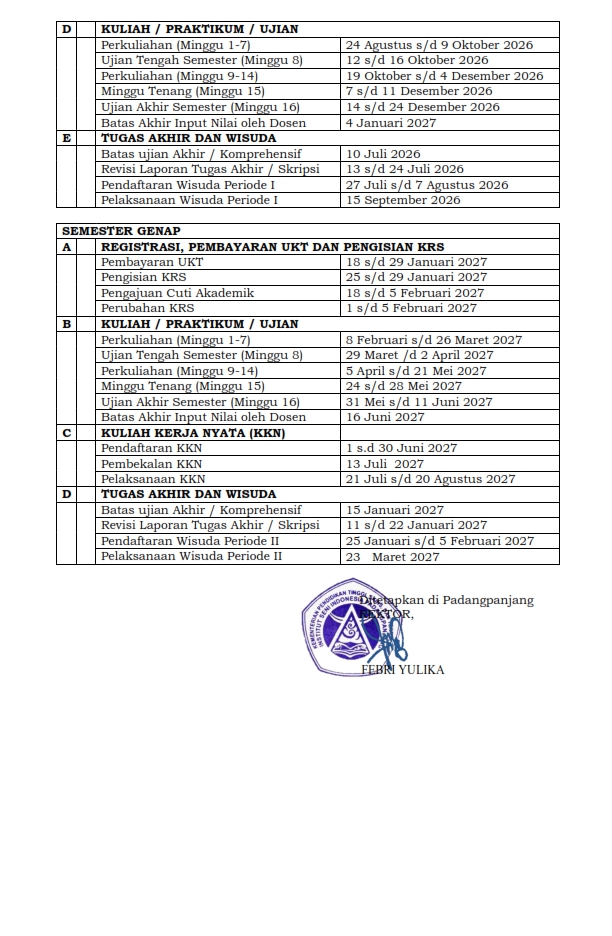 SK Kalender Akademik 2026/2027