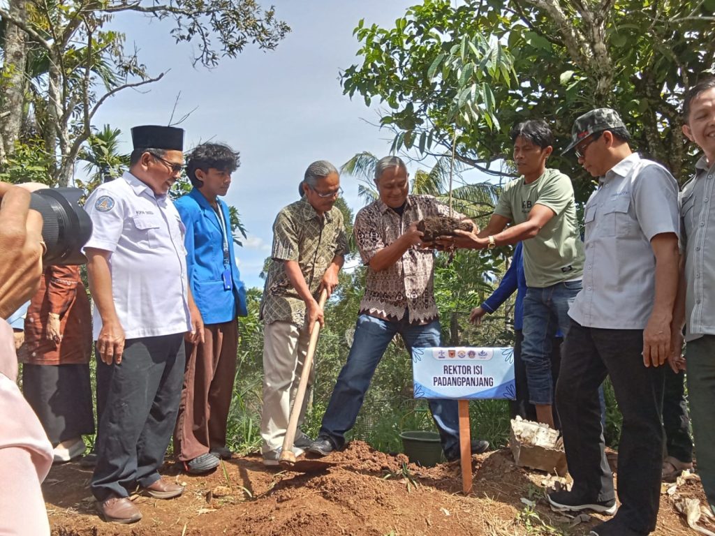 Dalam sambutannya, dr. Dwinanda menyampaikan apresiasi kepada ISI Padangpanjang dan mahasiswa yang berkontribusi langsung di wilayah terdampak bencana hidrometeorologi, termasuk banjir bandang (galodo) dan tanah longsor yang melanda sejumlah daerah di Tanah Datar. Ia menegaskan bahwa kegiatan penghijauan memiliki nilai strategis dalam menjaga keseimbangan ekosistem sekaligus meningkatkan kesejahteraan masyarakat.